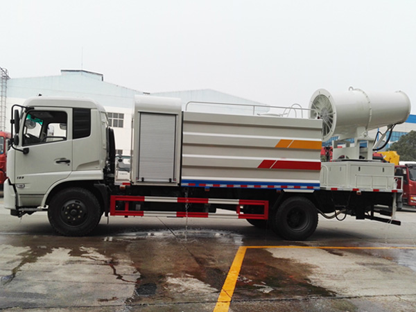 新款東風天錦11方霧炮車又稱:灑水抑塵車,霧炮降霾車,多功能霧炮灑水車,噴霧降塵車,綠化噴灑車,也被稱為“治霾神器”的一種環(huán)保遠射程高空噴霧車,東風天錦抑塵車裝備的霧炮可噴50-80米高的水霧,并且可以360度全方位旋轉(zhuǎn),可遙控操作。東風天錦霧炮車可用于噴霧降塵、城市霧霾治理等工作,經(jīng)環(huán)保部門測試,其可將空氣中的PM10濃度降低15%左右。